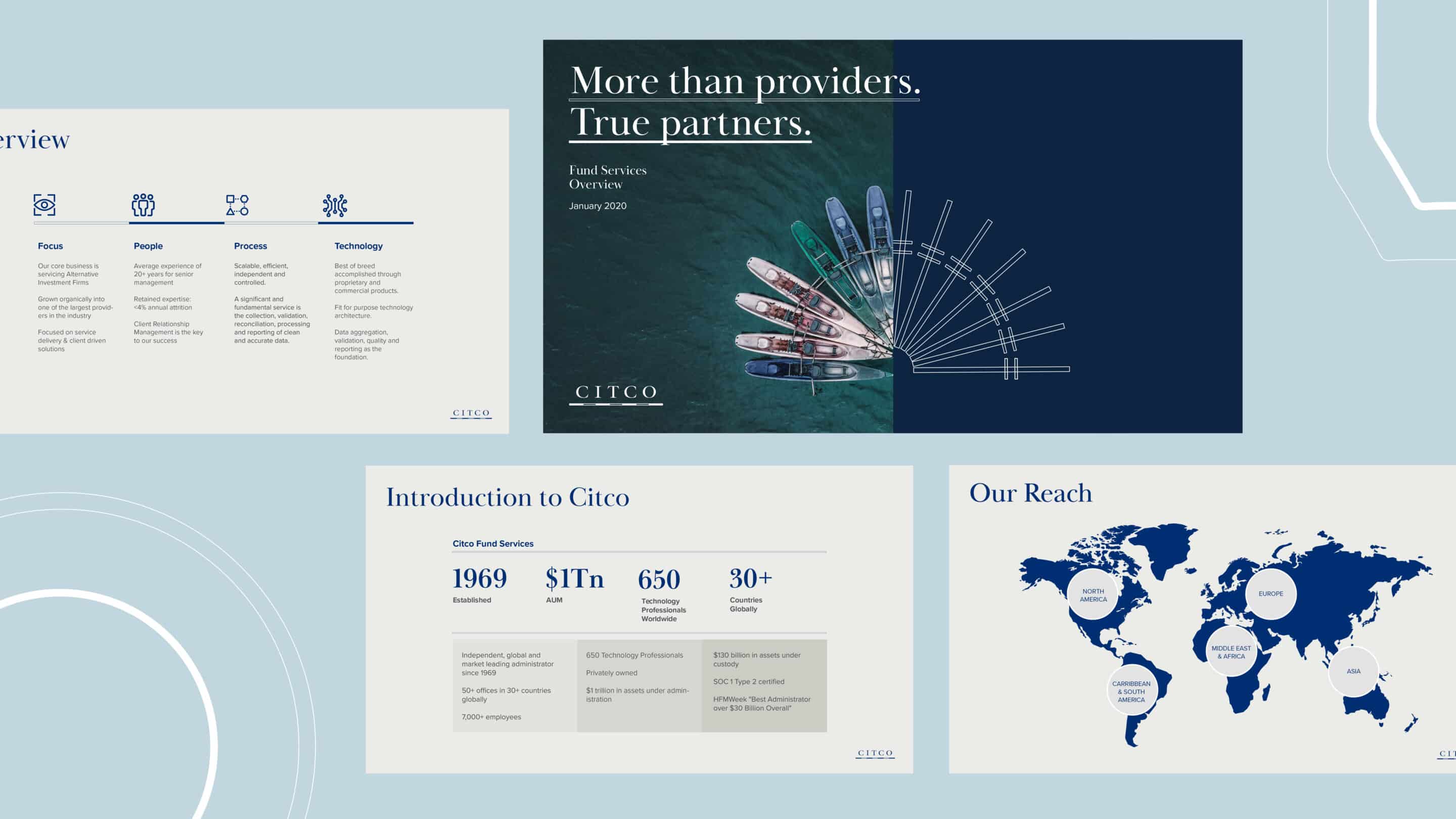 To support Citco’s expanding vision, we also developed a sub-brand for its portfolio management division, Mercator, and crafted a distinct strategy and messaging platform for its rapidly growing corporate governance offering.